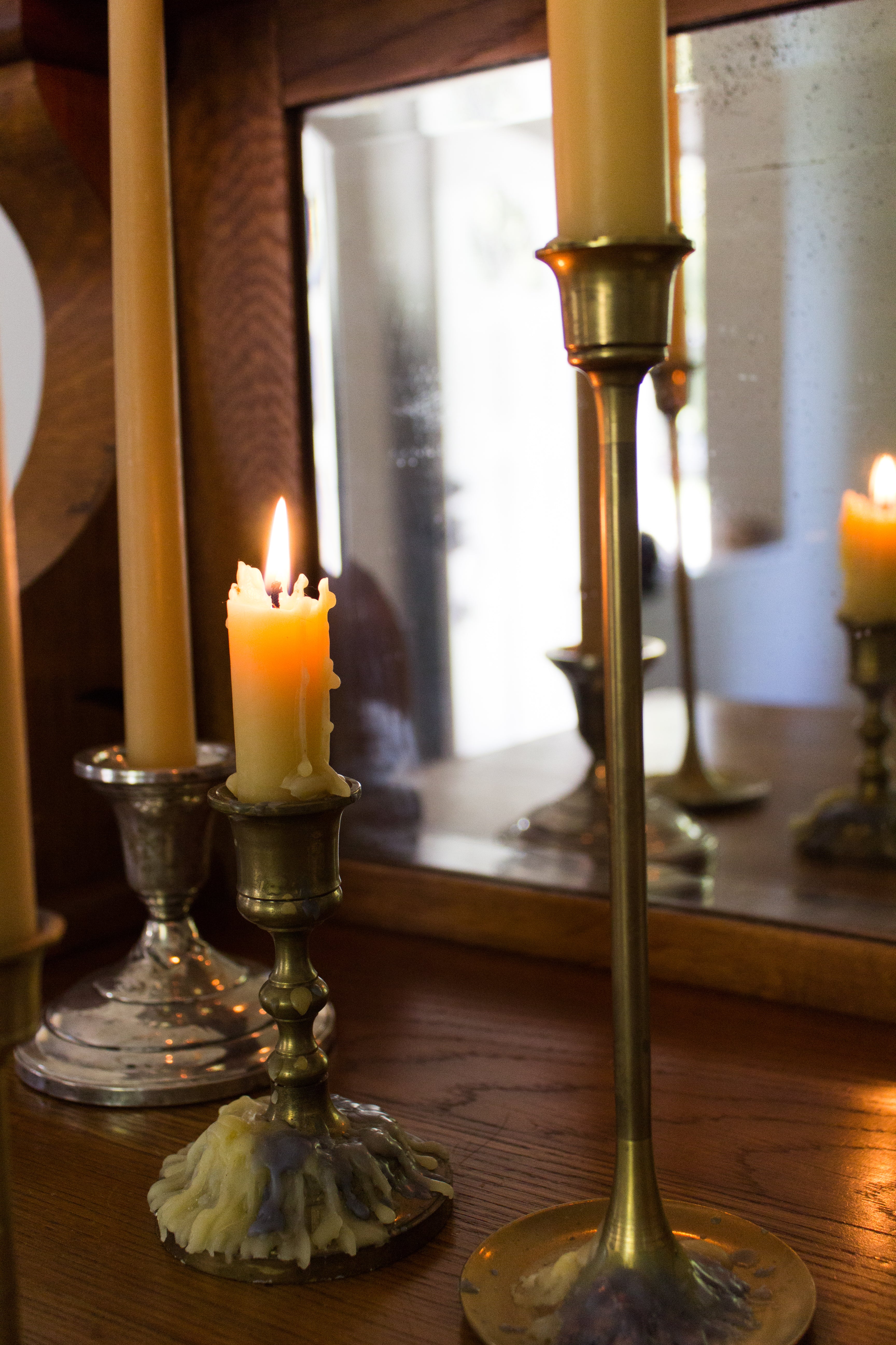 Humans are naturally drawn to the warmth of fire whether it’s from a fireplace or just the glow that a simple candle gives. I am sensitive to most scents, but enjoy using 100% beeswax candles for the natural honey smell and warm yellow glow. Cluster a few together for a collected look, and don’t place right next to a lamp, lest their effect be diminished! Bonus points for placing them near something reflective.
