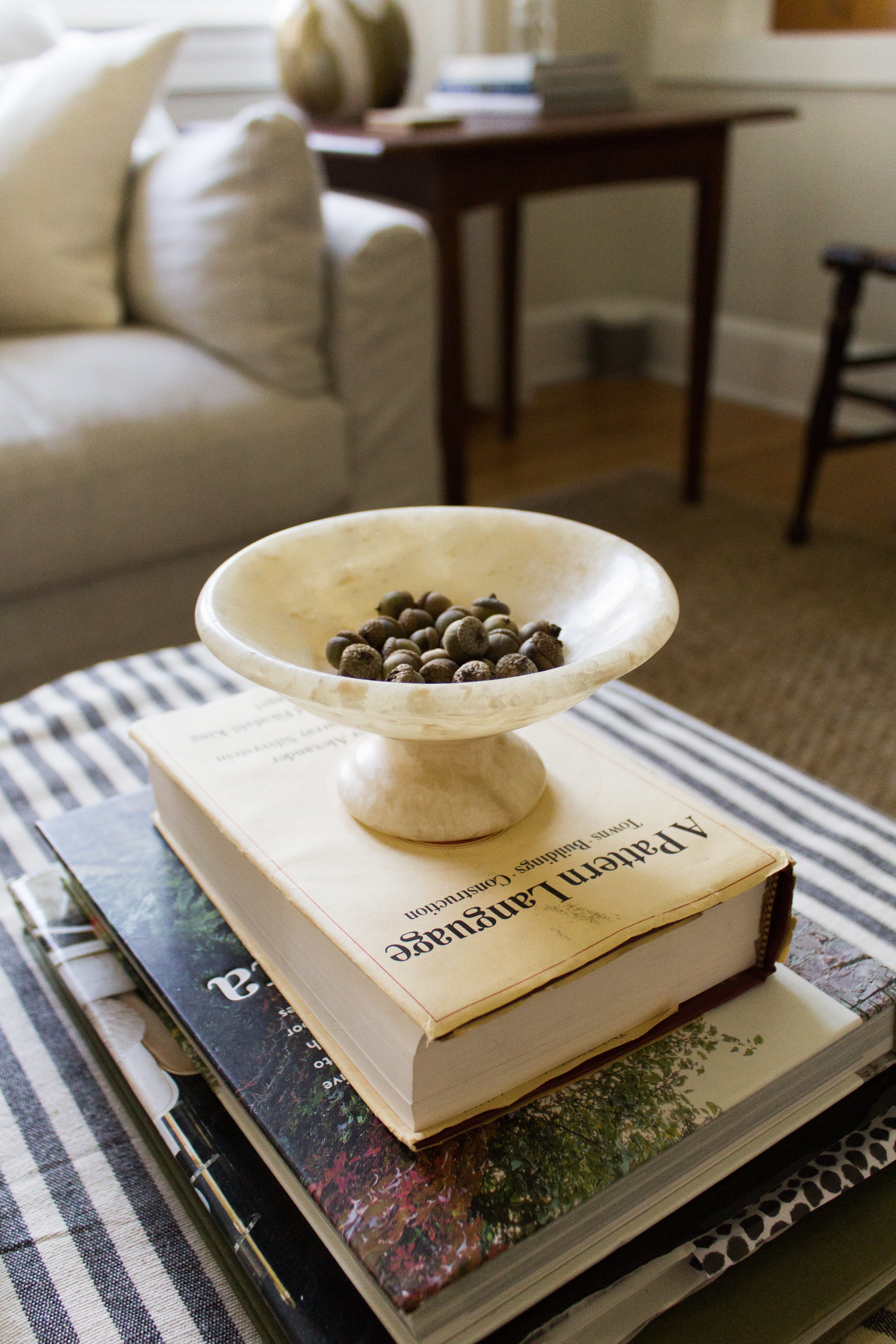 Not too long ago, a friend told me she was scared to let her child walk around in someone’s home because everything looked so decorate-y. I learned from her experience that hosting doesn’t mean staging and primping my home. More often than not, picture-perfect styling can feel unapproachable. Provide simple luxuries instead that allow everyone to relax and enjoy the season. What makes you think of fall coziness? A woven basket with a mixture of light and heavy throws? Throwing the windows open? A tin of apple snickerdoodles? If so, I’m begging you to send some my way!